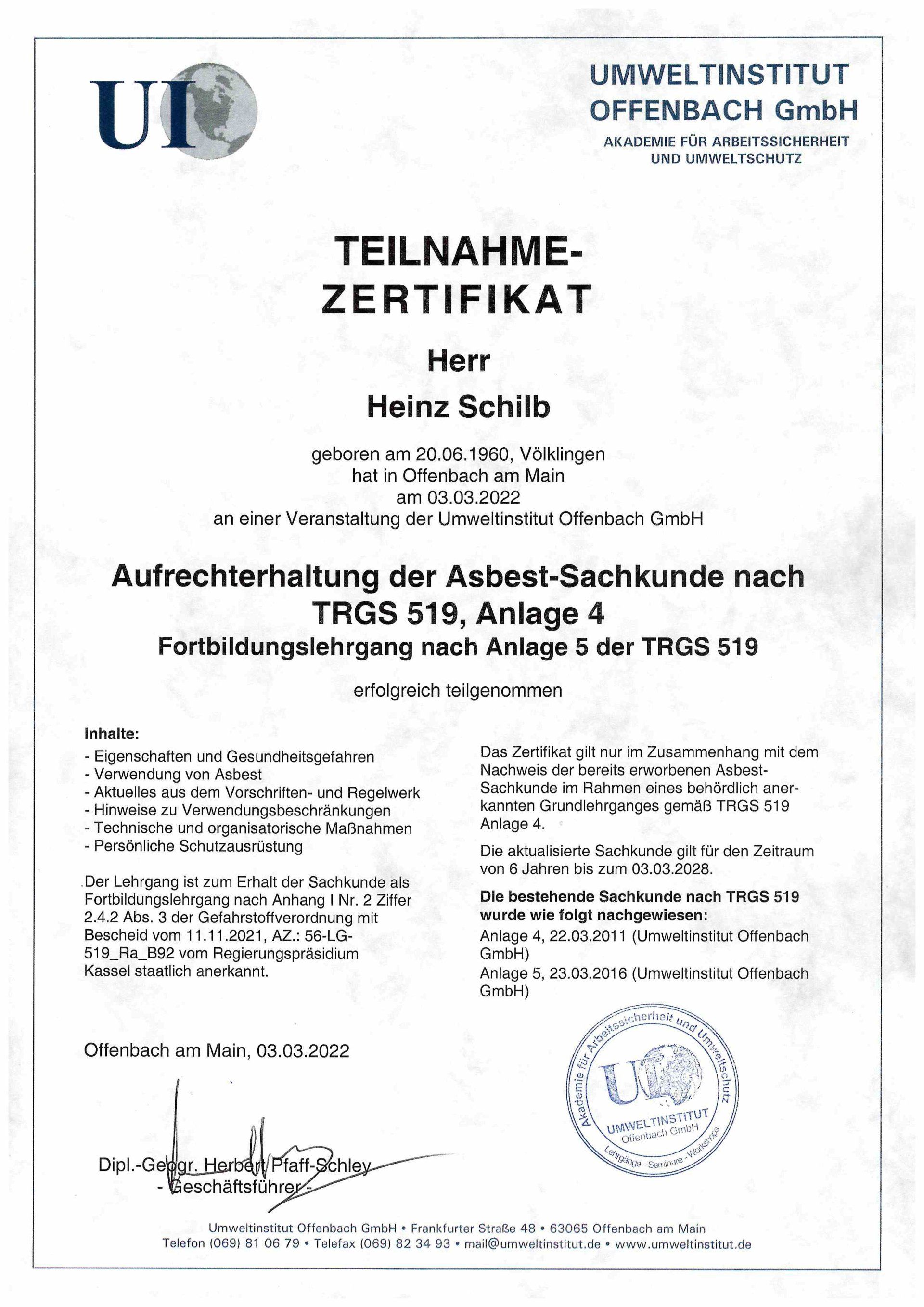 Betriebsbeauftragter für Asbest nach TRGS 519