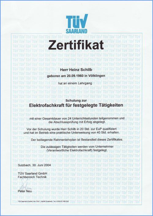 Wir sind befähigt in abgeschlossenen, elektrischen Betriebsstätten zu arbeiten.