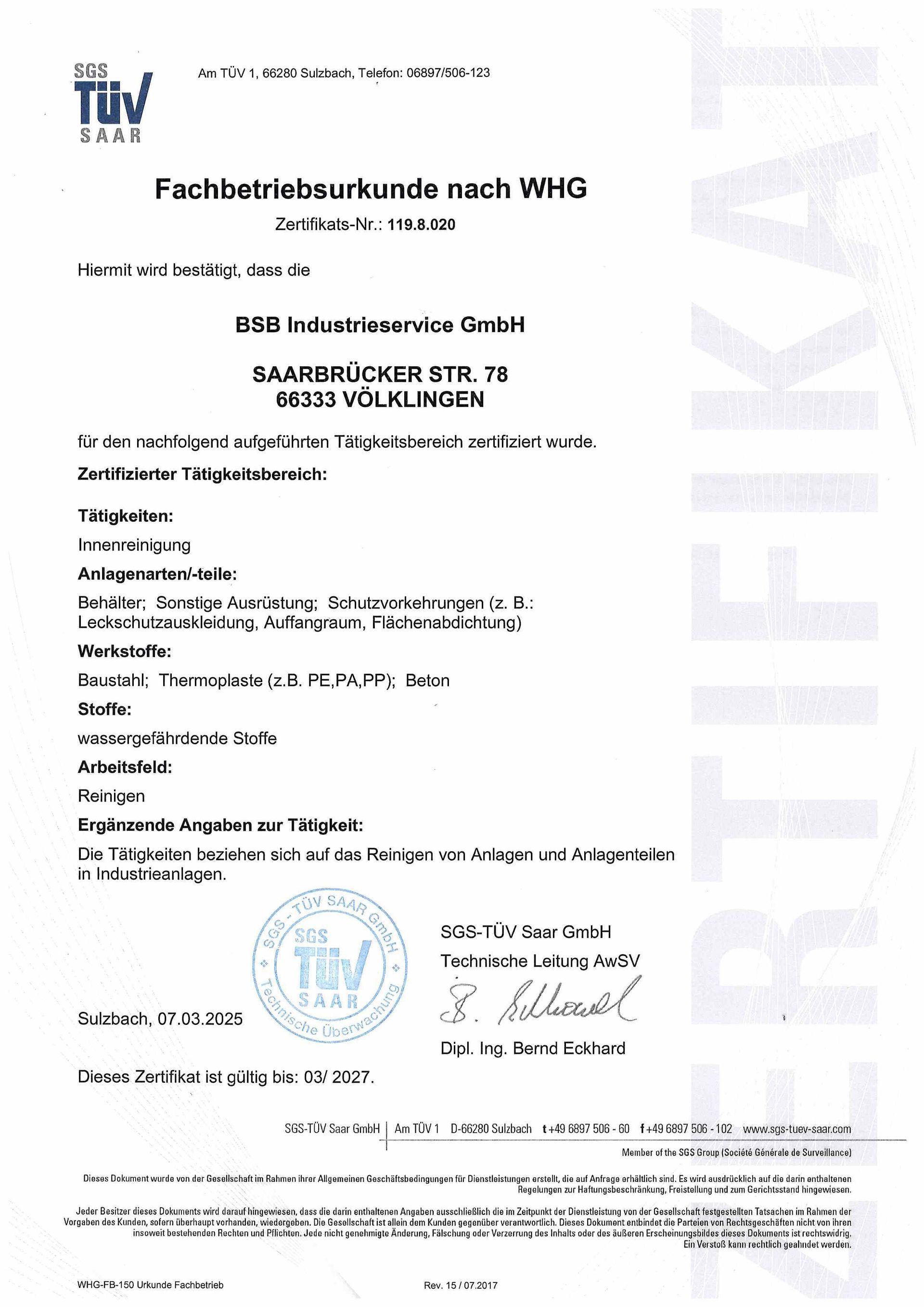 Unsere Firma ist zertifiziert nach Wasser-Haushalts-Gesetz WHG §19. Uns wurde bescheinigt, dass unser Umweltmanagement-system nach DIN ISO 14001/2015 aufgebaut und implementiert ist.